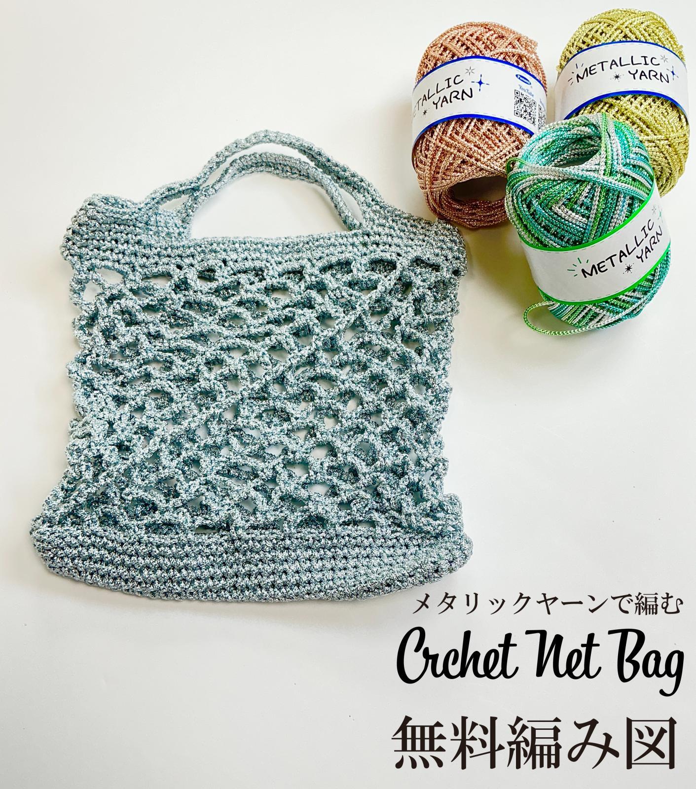 【無料編み図】メタリックヤーンで作るネットバッグ