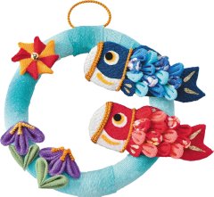 兜のモチーフにこいのぼり2匹をつるした下げ飾りです。