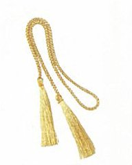 流行のパステルカラーにゴールドのラメ糸を配した、かわいらしくも豪華な房です。