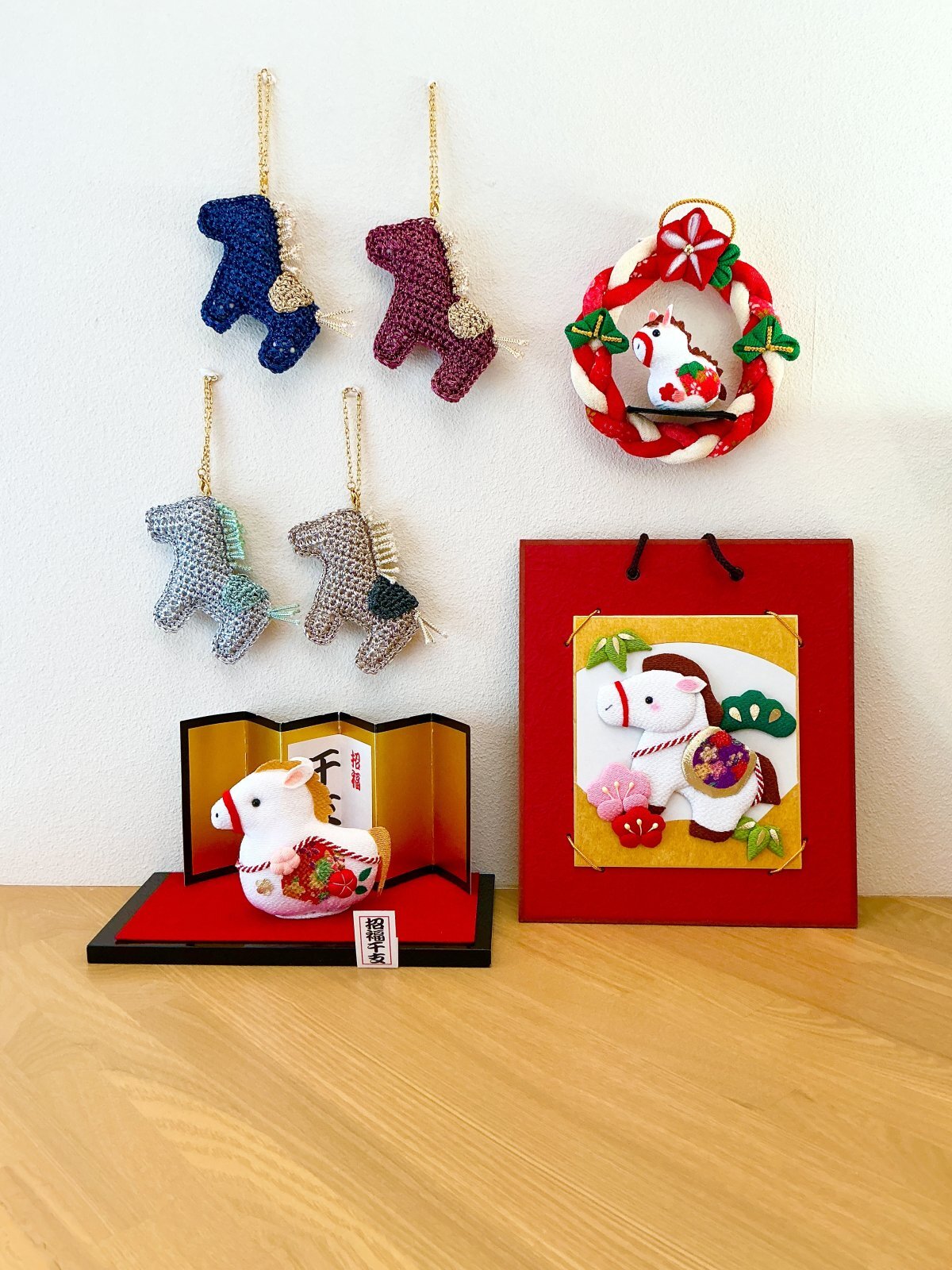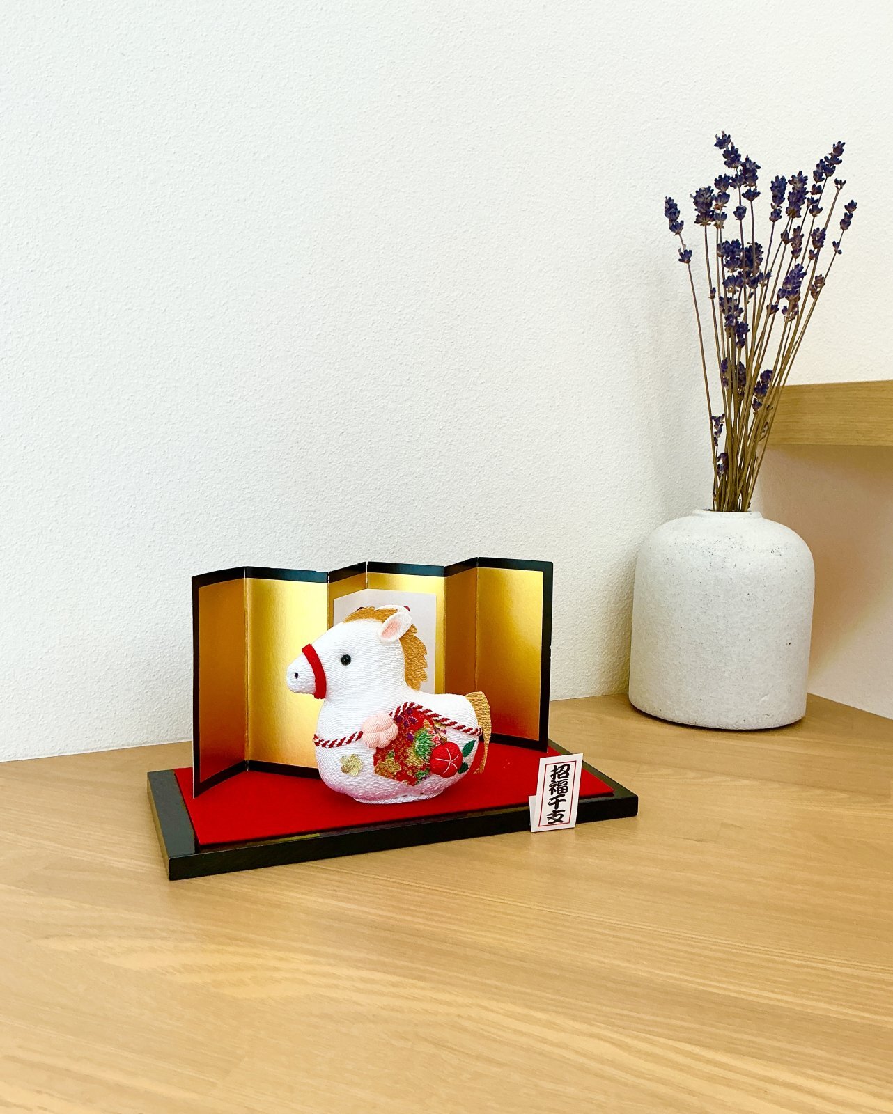 金屏風、印刷紙“干支”、立札、もうせん、ちりめん、綿、刺し目、紅白紐、ボール紙